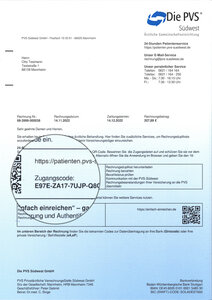Rufen Sie diese Adresse auf: https://patienten.pvs-suedwest.de/ Geben Sie dort den 16-stelligen Zugangscode ein. Dieser Zugangscode ist für jede Rechnung einzigartig. Sie finden den Code auf dem Begleitschreiben.